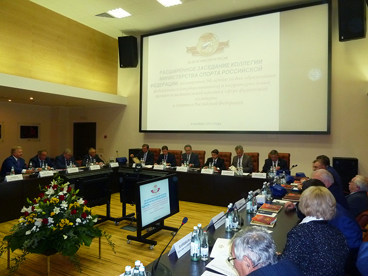 С 6 по 8 ноября 2013 года на базе ФГУП «Учебно-тренировочный центр «Новогорск» в г. Химки (Московская область) состоялось расширенное заседание Коллегии Министерства спорта РФ, посвященное 90-летию со дня образования федерального (государственного) и территориальных органов исполнительной власти в сфере физической культуры и спорта в Российской Федерации.